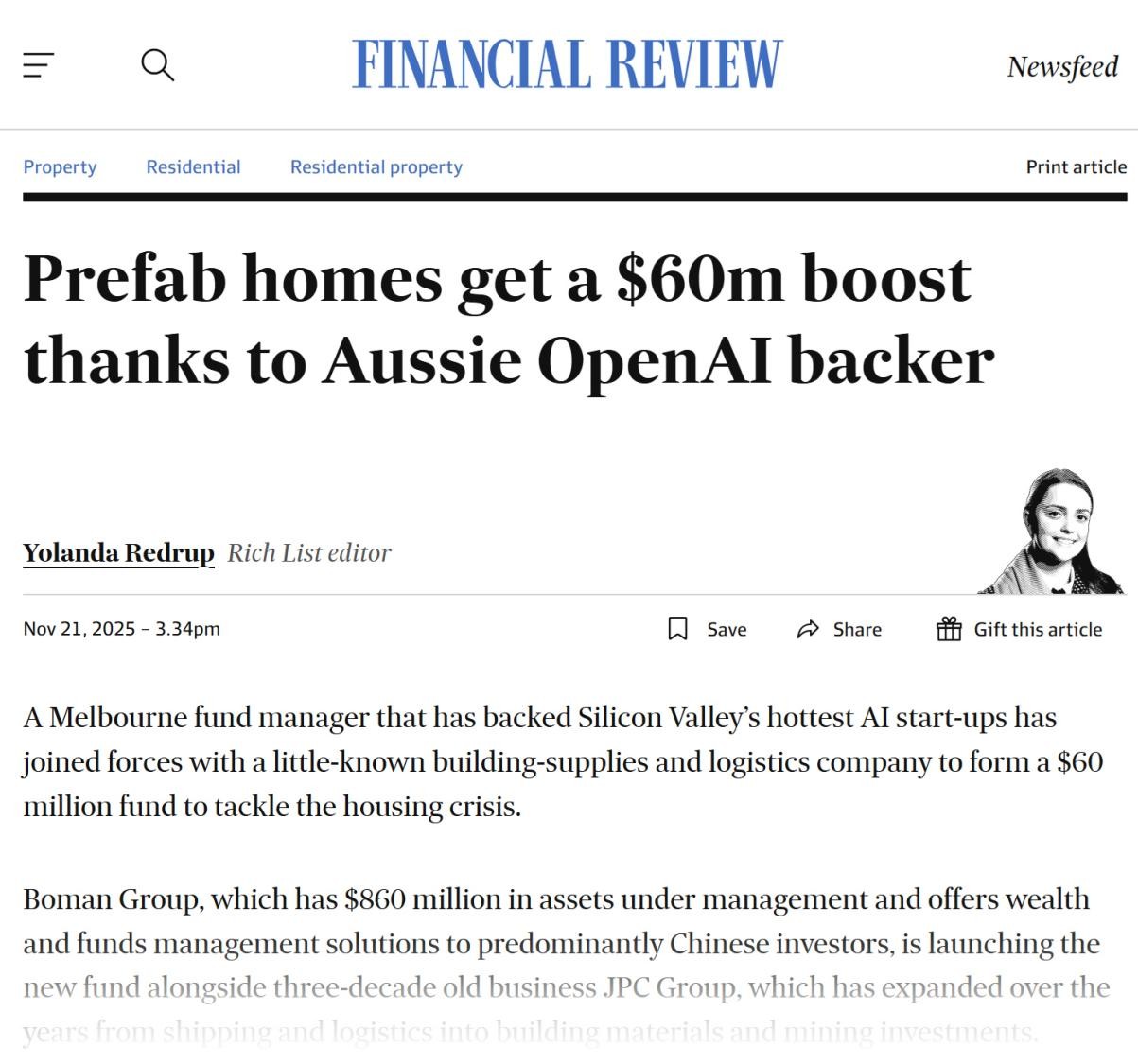 Prefab homes get a $60m boost thanks to Aussie OpenAI backer