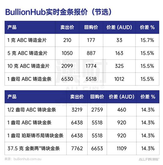 更关键的一点:实物黄金的“价差成本”,也就是:你买入的价格,与卖出时回购价格之间的差。以市面报价为例(节选):