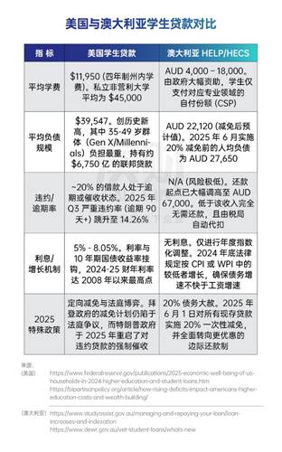 澳洲的 HELP/HECS 逻辑完全不同:无商业利息,仅指数化调整,且改革后按 CPI 或 WPI 较低者进行增长,确保债务增速不快于工资增速。还款门槛被抬高到年收入 67,000澳元以上才开始,并由税局自动代扣。更关键的是,2025年6月还对现存贷款实施 20%一次性减免,预计抹去约 160亿澳元债务,人均减免约 5520澳元。这类设计,目的就是不让年轻人被学贷压成“起跑即负债的长期现金流牢笼”。
