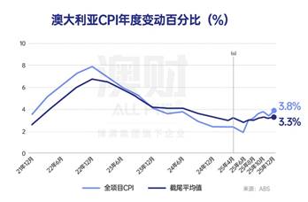 截至目前,澳洲的通胀水平,大致还在 3% 多一点偏上的位置,整体 CPI 大约在 3.8% 左右,核心通胀也仍然明显高于 3%。换句话说,并没有完全回到央行设定的 2%–3% 的舒适区间。