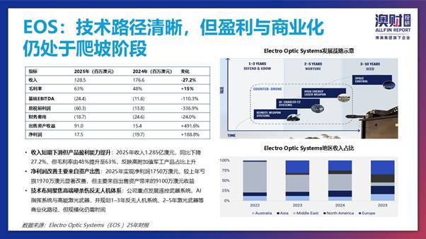 国防科技公司 EOS,聚焦高端军工技术方向,毛利率持续提升,但商业化与规模化仍处于爬坡阶段。