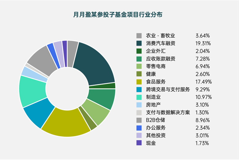 其投资分布于消费汽车融资、食品服务、制造业、跨境交易与支付服务、B2B仓储以及应收账款融资等多个行业板块。