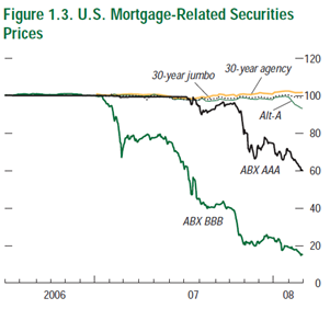 Note: ABX = an index of credit default swaps on mortgage-related asset-backed securities
